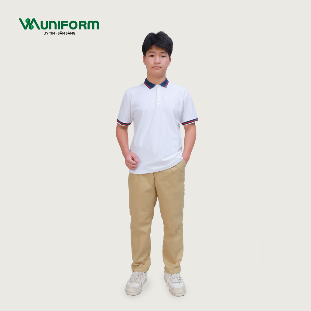 Áo polo đồng phục học sinh cấp 3 thường có kiểu dáng đơn giản nhưng lịch sự: